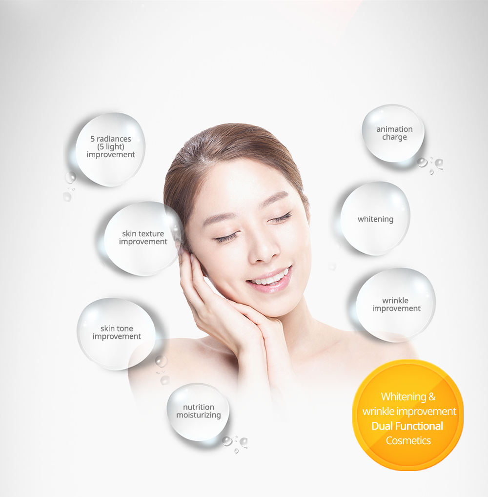 - · Whitening & wrinkle improvement dual functional cosmetics